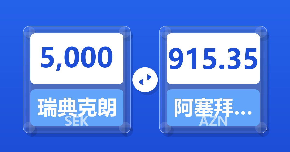 5,000 瑞典克朗 (SEK) = 914.03 阿塞拜疆马纳特 (AZN)
