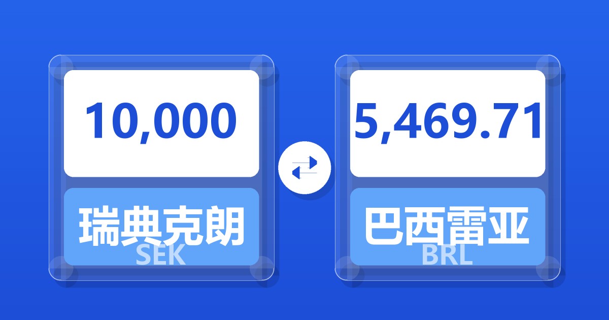 10,000 瑞典克朗 (SEK) = 5,484.72 巴西雷亚尔 (BRL)