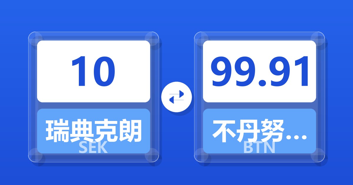 10 瑞典克朗 (SEK) = 99.51 不丹努尔特鲁姆 (BTN)