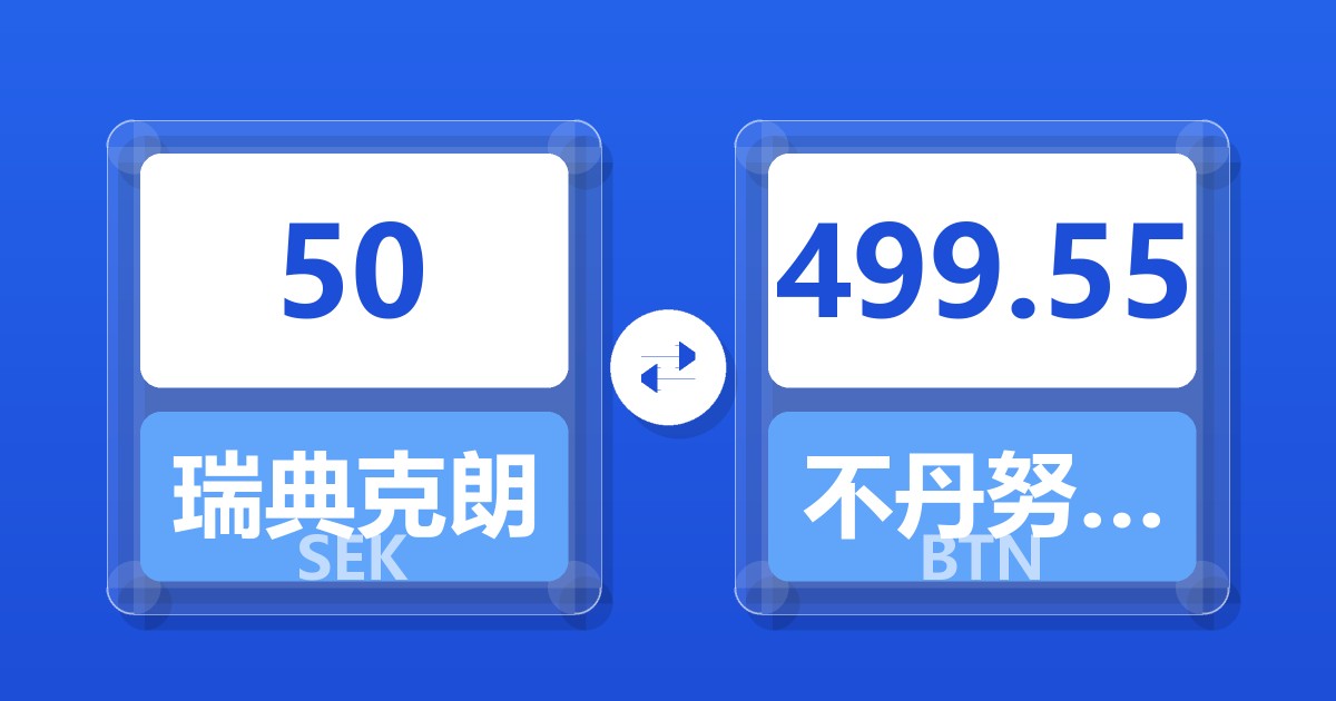 50 瑞典克朗 (SEK) = 497.54 不丹努尔特鲁姆 (BTN)