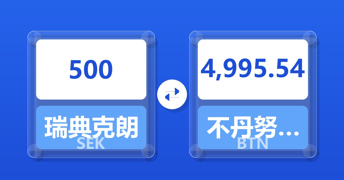 500 瑞典克朗 (SEK) = 4,975.35 不丹努尔特鲁姆 (BTN)