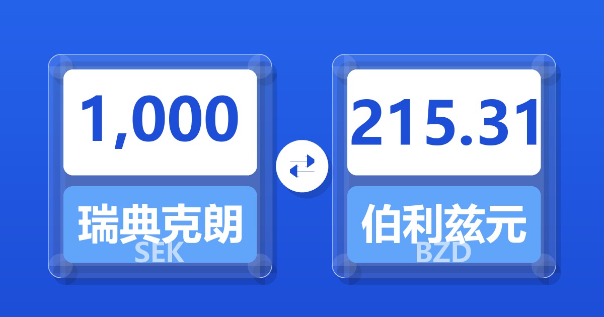 1,000 瑞典克朗 (SEK) = 214.98 伯利兹元 (BZD)