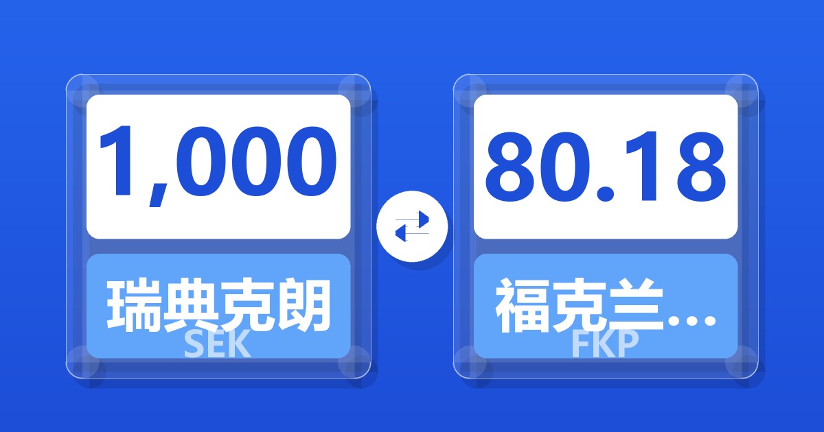 1,000 瑞典克朗 (SEK) = 80.11 福克兰群岛镑 (FKP)