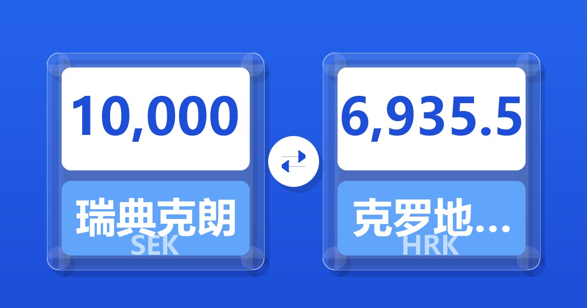 10,000 瑞典克朗 (SEK) = 6,935.50 克罗地亚库纳 (HRK)