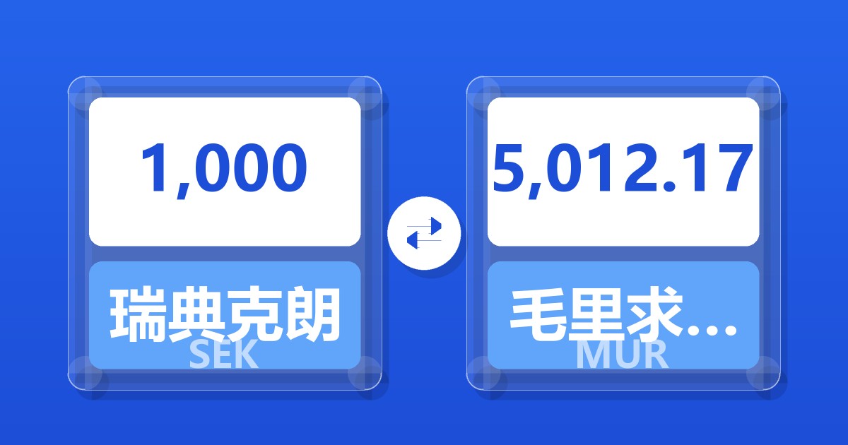 1,000 瑞典克朗 (SEK) = 5,008.01 毛里求斯卢比 (MUR)