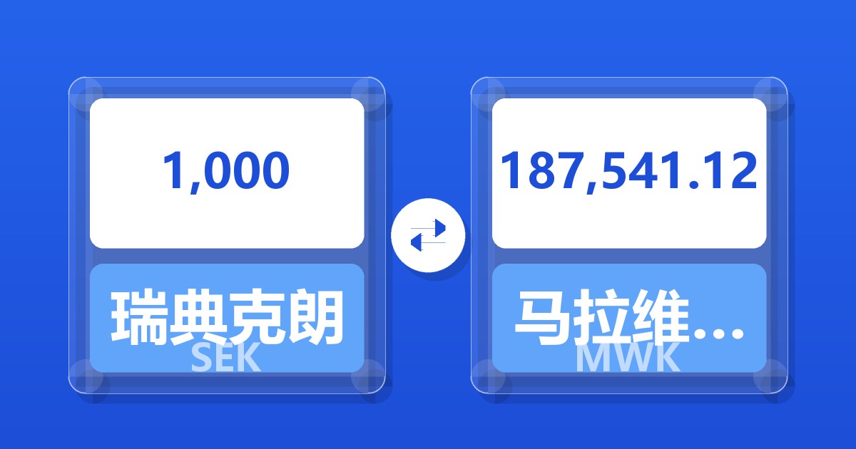 1,000 瑞典克朗 (SEK) = 187,199.14 马拉维克瓦查 (MWK)