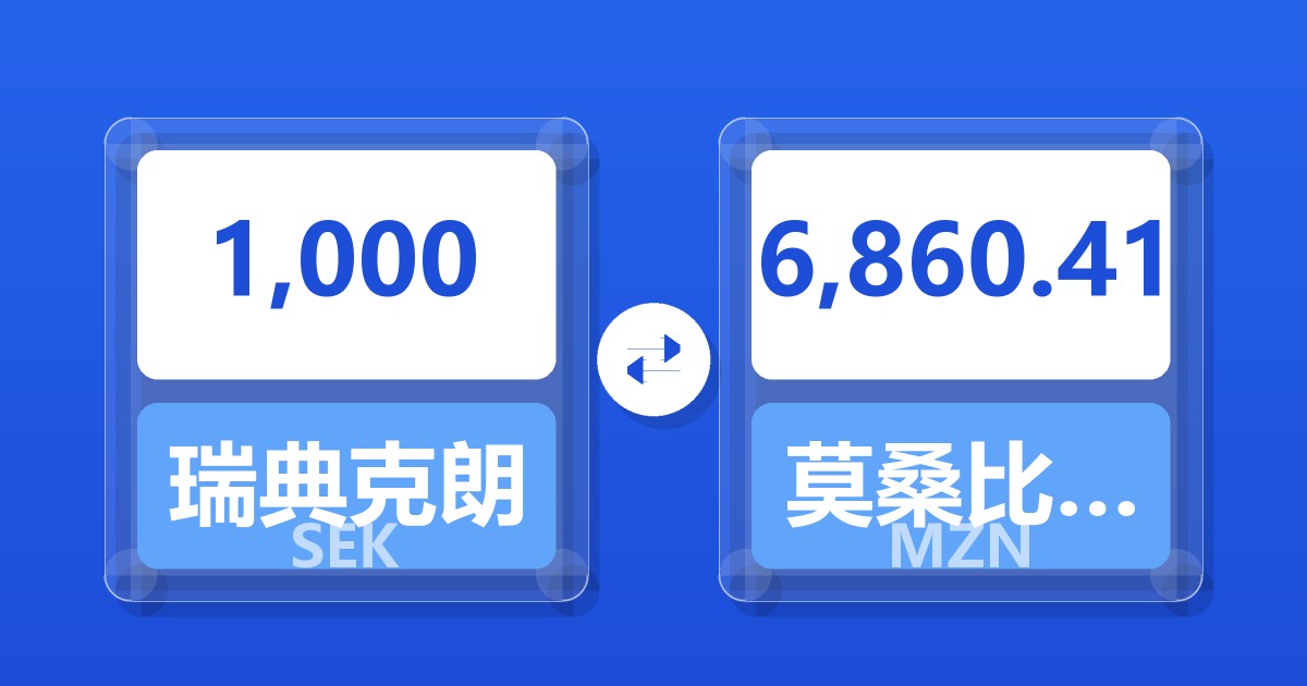 1,000 瑞典克朗 (SEK) = 6,856.06 莫桑比克梅蒂卡尔 (MZN)