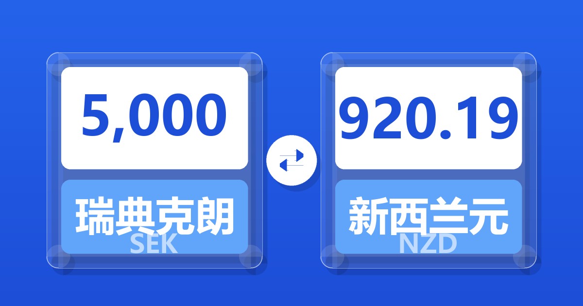 5,000 瑞典克朗 (SEK) = 922.36 新西兰元 (NZD)