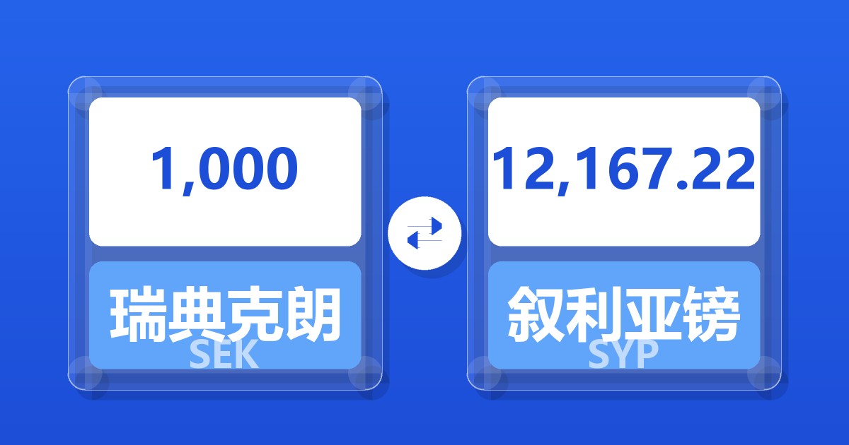 1,000 瑞典克朗 (SEK) = 12,209.13 叙利亚镑 (SYP)