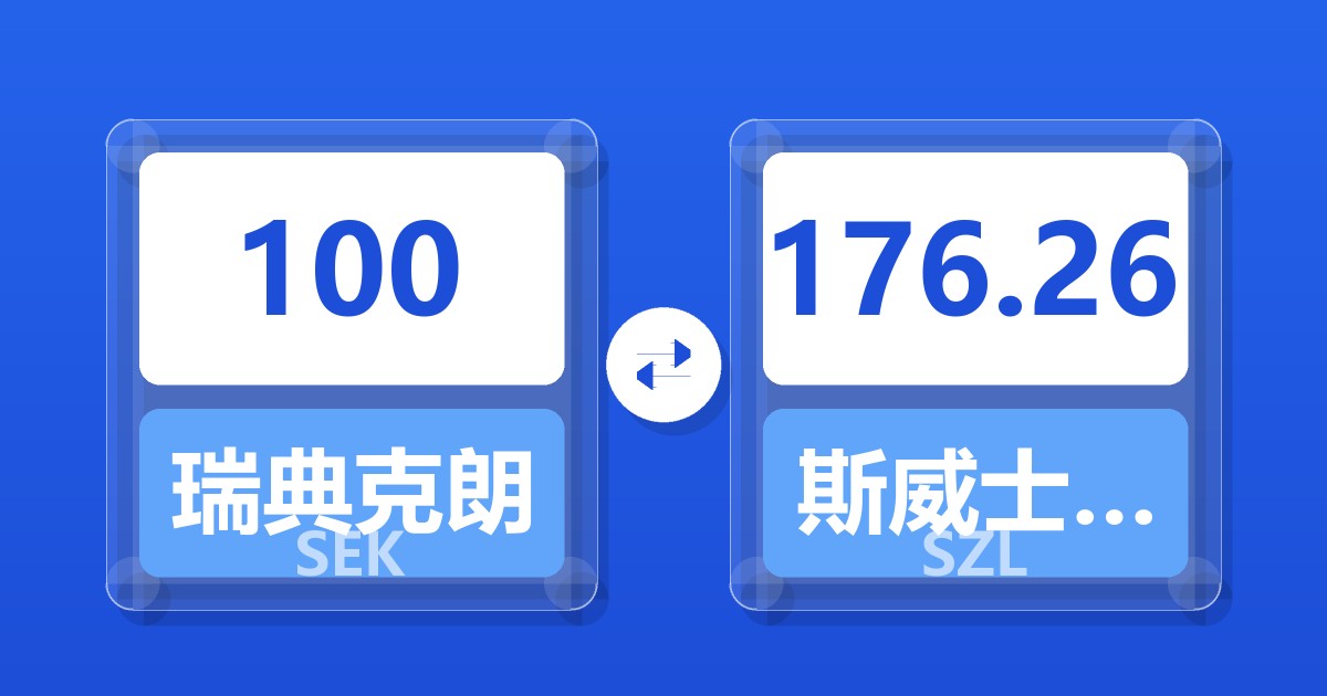 100 瑞典克朗 (SEK) = 176.26 斯威士兰里兰吉尼 (SZL)
