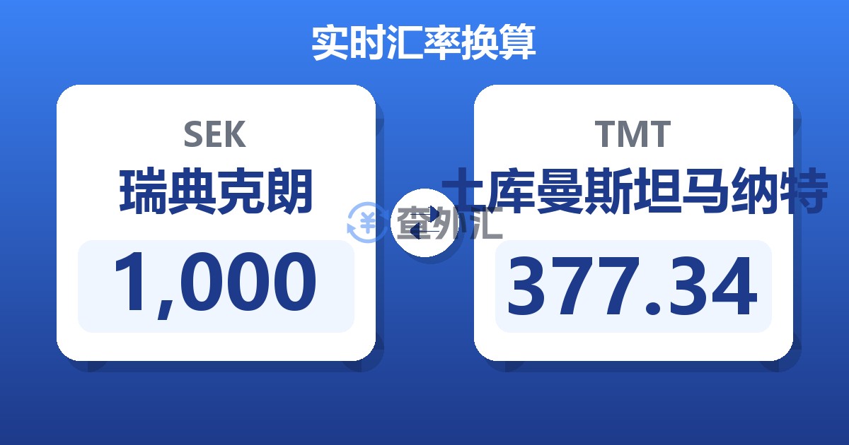 1,000 瑞典克朗 (SEK) = 376.88 土库曼斯坦马纳特 (TMT)