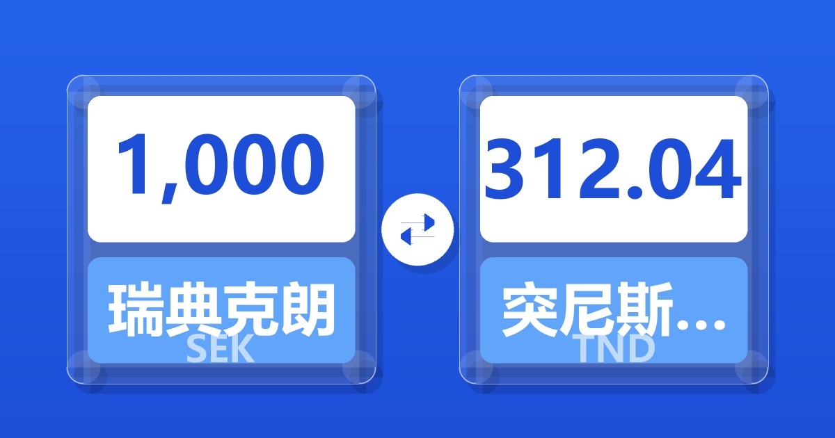 1,000 瑞典克朗 (SEK) = 312.36 突尼斯第纳尔 (TND)
