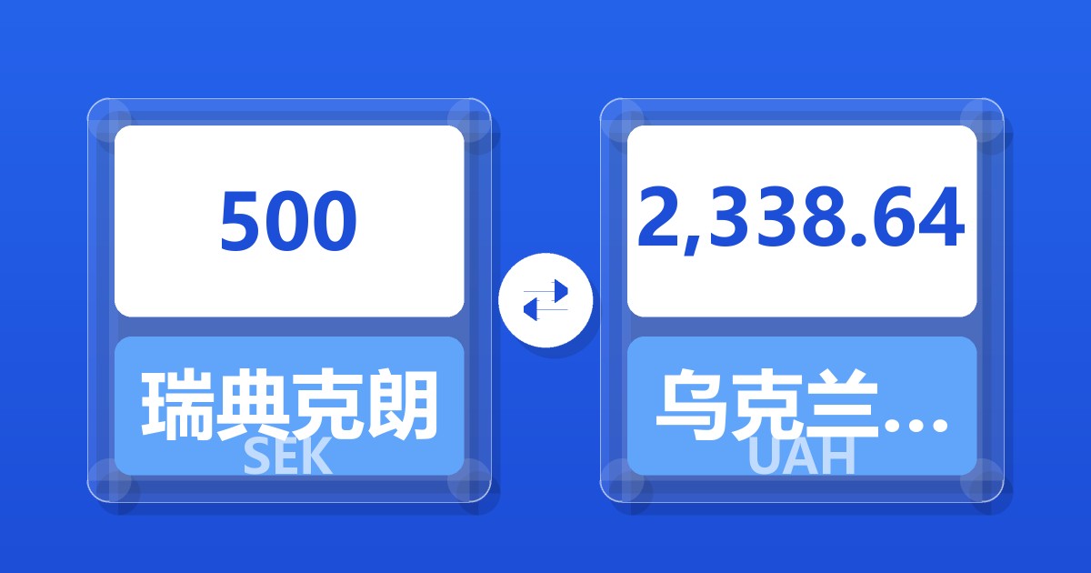 500 瑞典克朗 (SEK) = 2,331.88 乌克兰格里夫纳 (UAH)