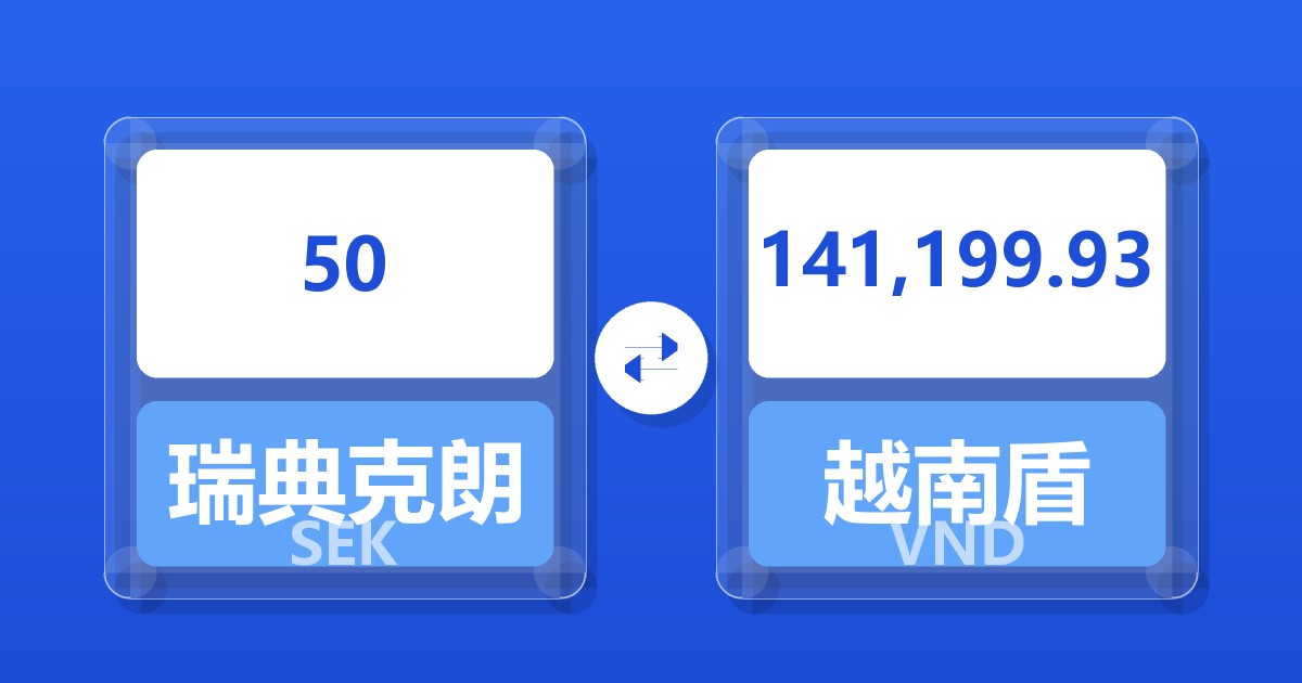 50 瑞典克朗 (SEK) = 141,150.23 越南盾 (VND)