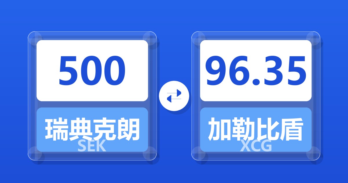 500 瑞典克朗 (SEK) = 96.20 加勒比盾 (XCG)