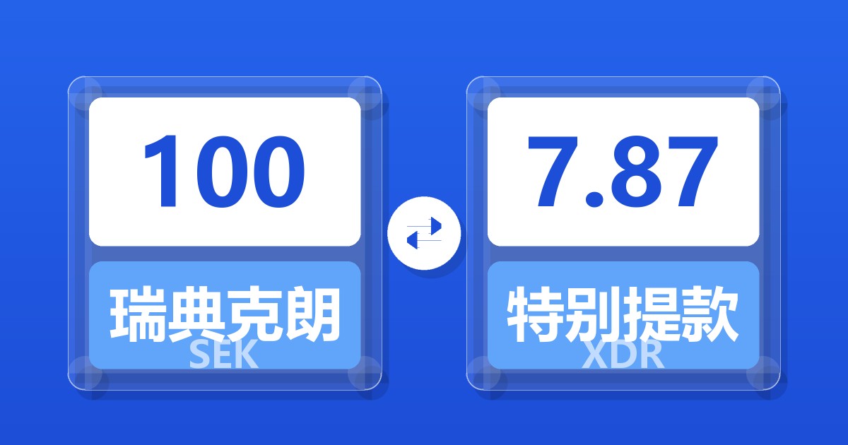 100 瑞典克朗 (SEK) = 7.84 特别提款权 (XDR)