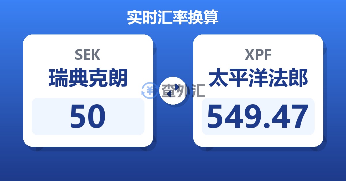 50 瑞典克朗 (SEK) = 549.22 太平洋法郎 (XPF)