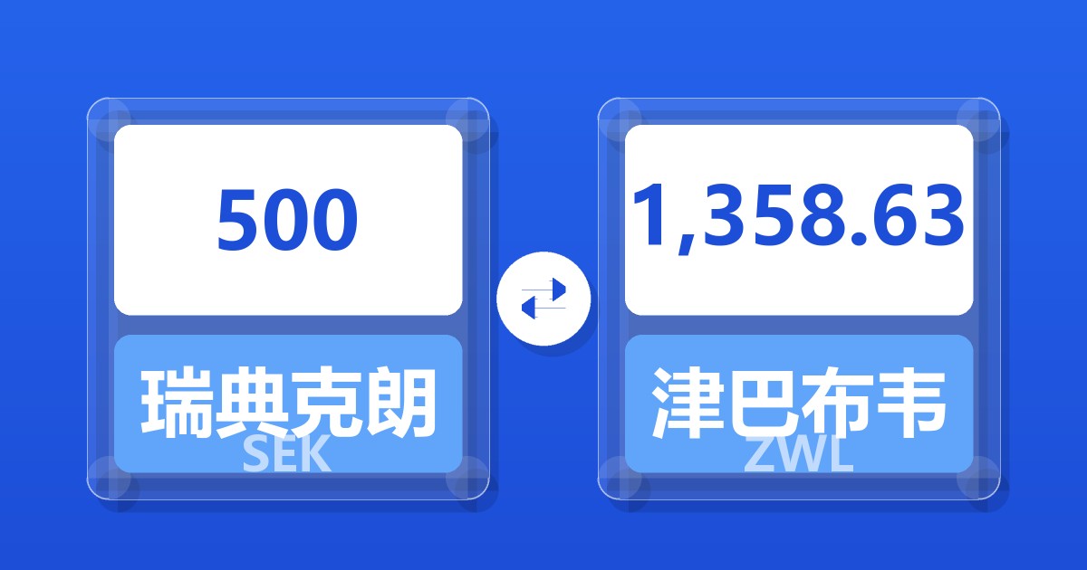 500 瑞典克朗 (SEK) = 1,356.37 津巴布韦元 (ZWL)