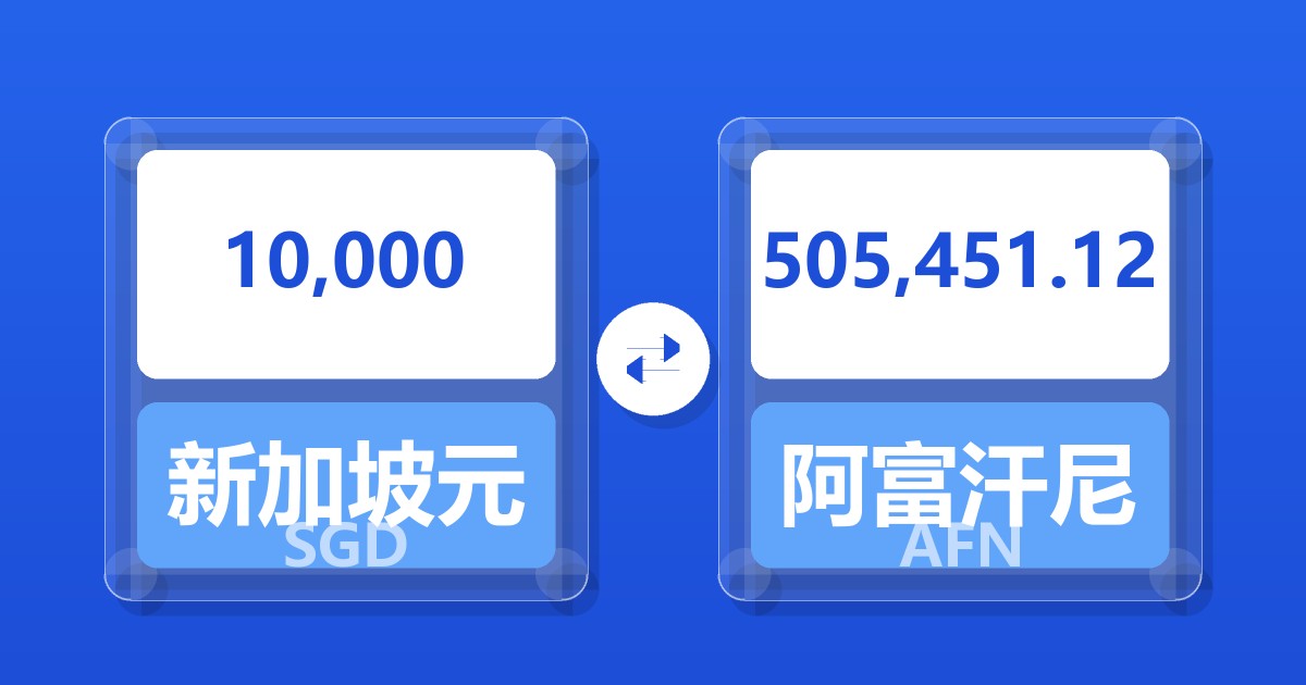 10,000 新加坡元 (SGD) = 509,862.65 阿富汗尼 (AFN)