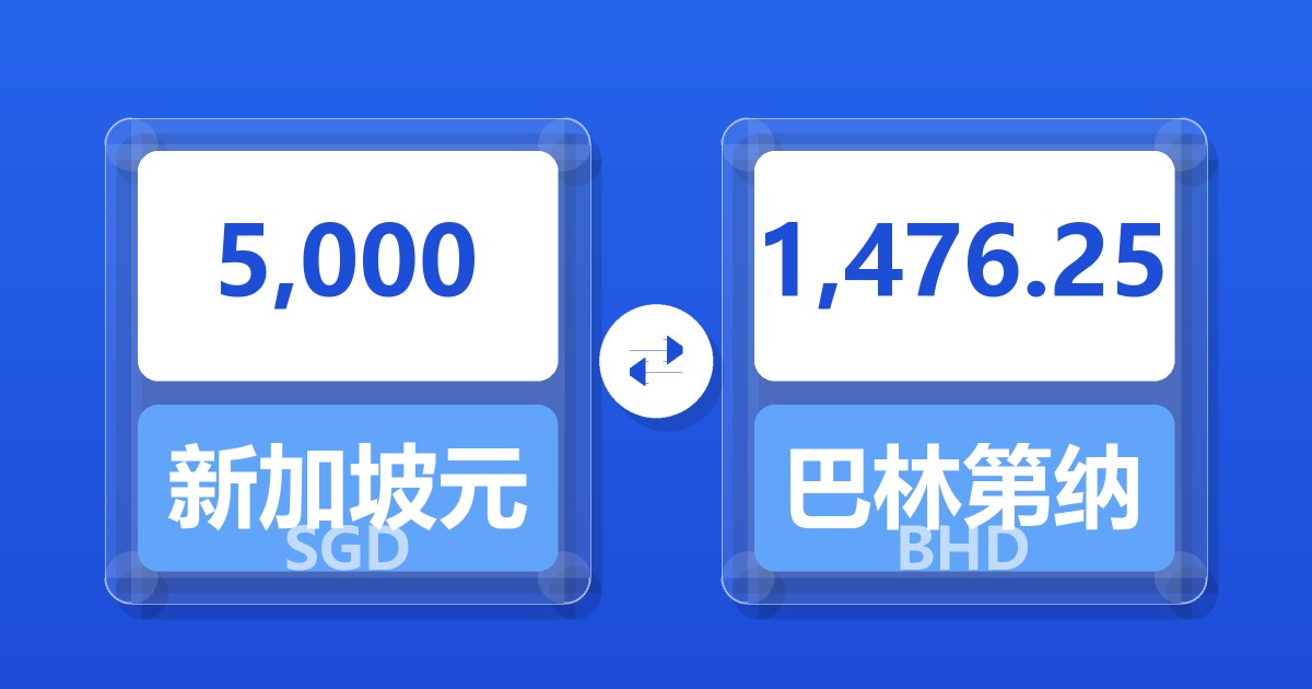 5,000 新加坡元 (SGD) = 1,475.55 巴林第纳尔 (BHD)