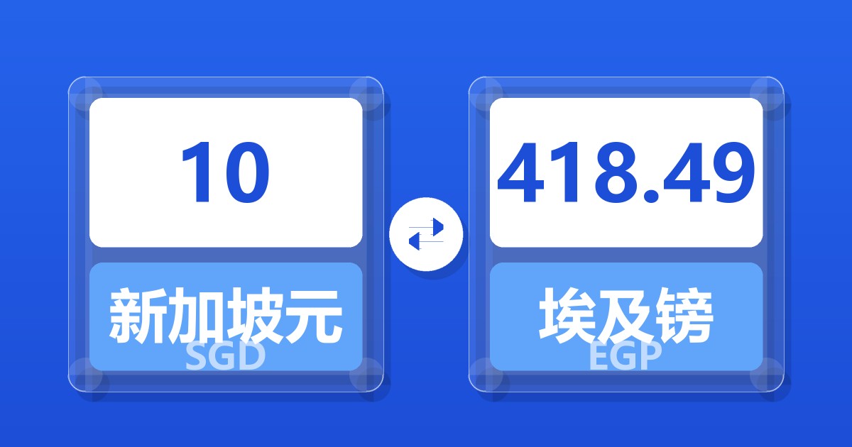 10 新加坡元 (SGD) = 418.49 埃及镑 (EGP)