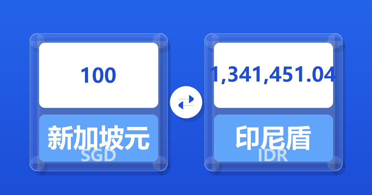 100 新加坡元 (SGD) = 1,335,102.19 印尼盾 (IDR)