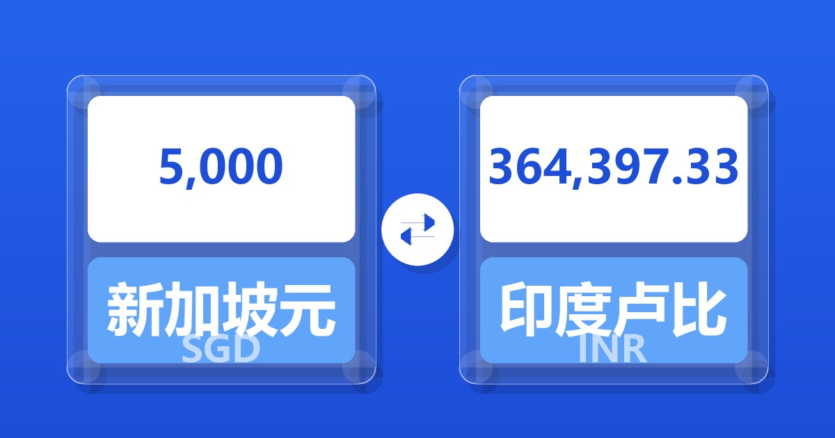 5,000 新加坡元 (SGD) = 363,294.09 印度卢比 (INR)