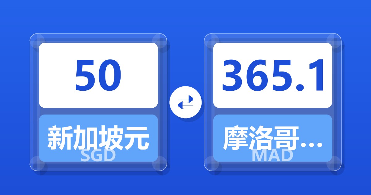 50 新加坡元 (SGD) = 365.71 摩洛哥迪拉姆 (MAD)