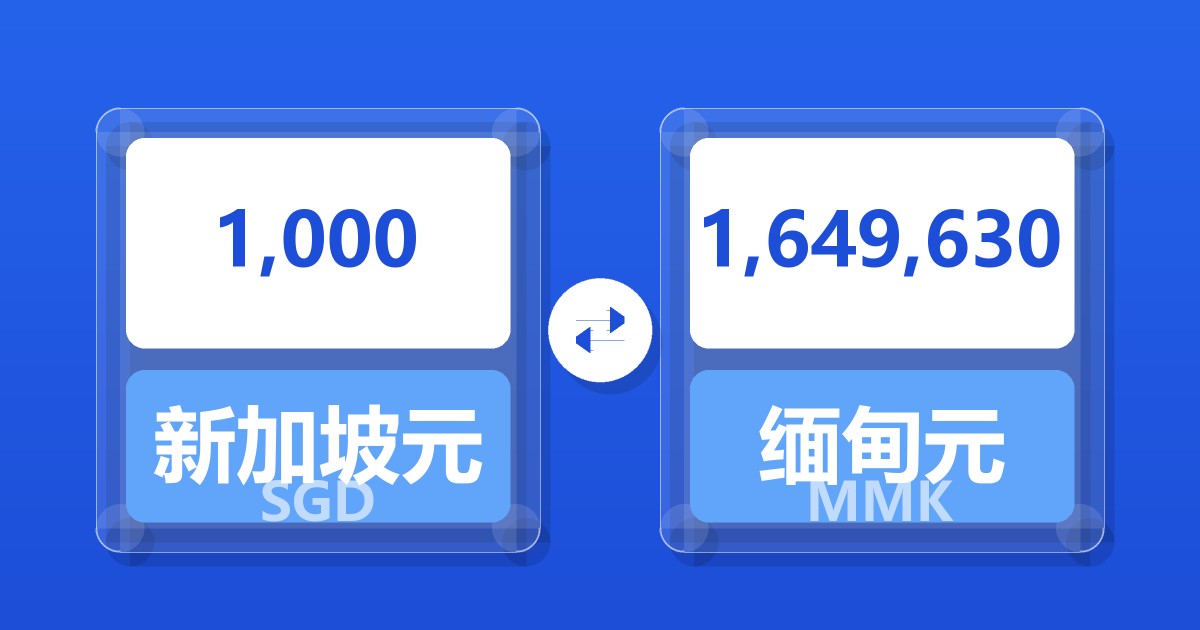 1,000 新加坡元 (SGD) = 1,649,171.96 缅甸元 (MMK)