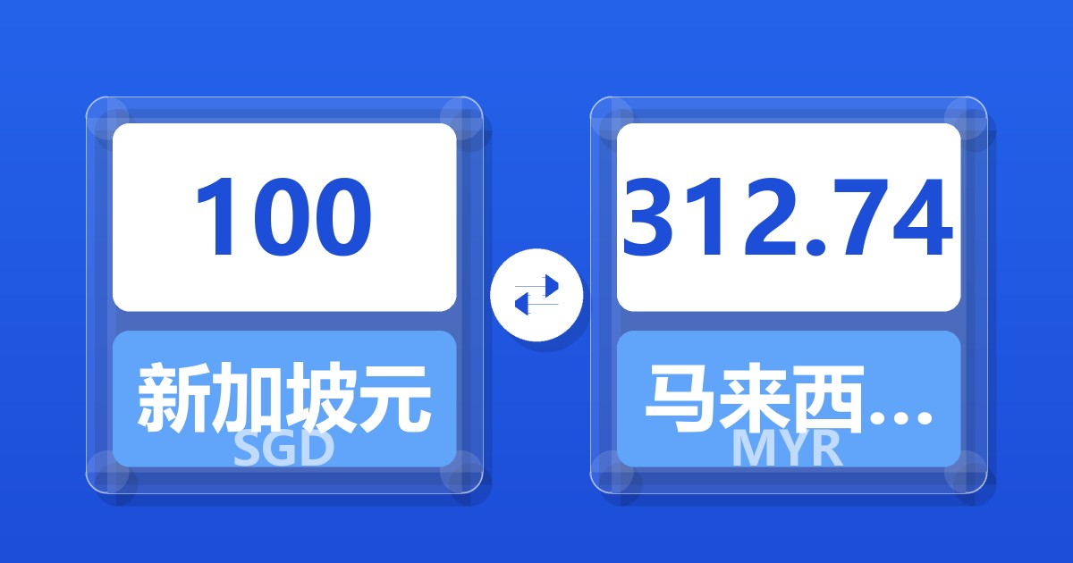 100 新加坡元 (SGD) = 312.19 马来西亚林吉特 (MYR)