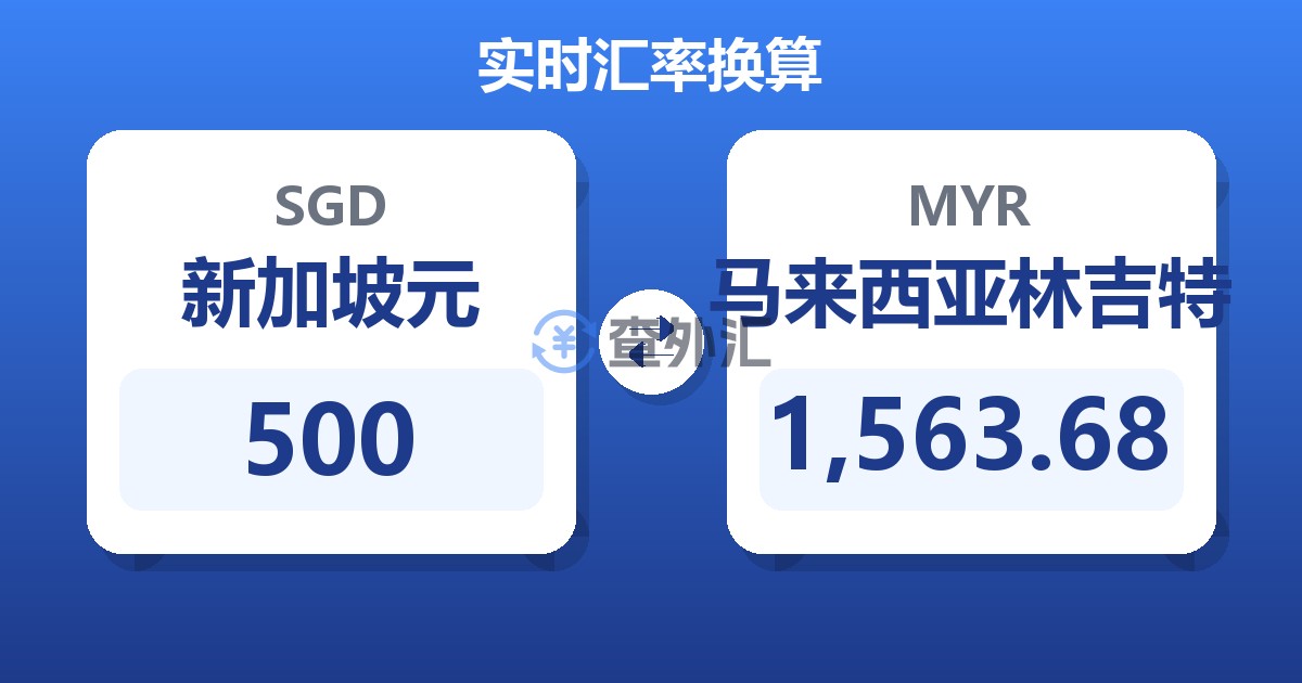 500 新加坡元 (SGD) = 1,560.94 马来西亚林吉特 (MYR)