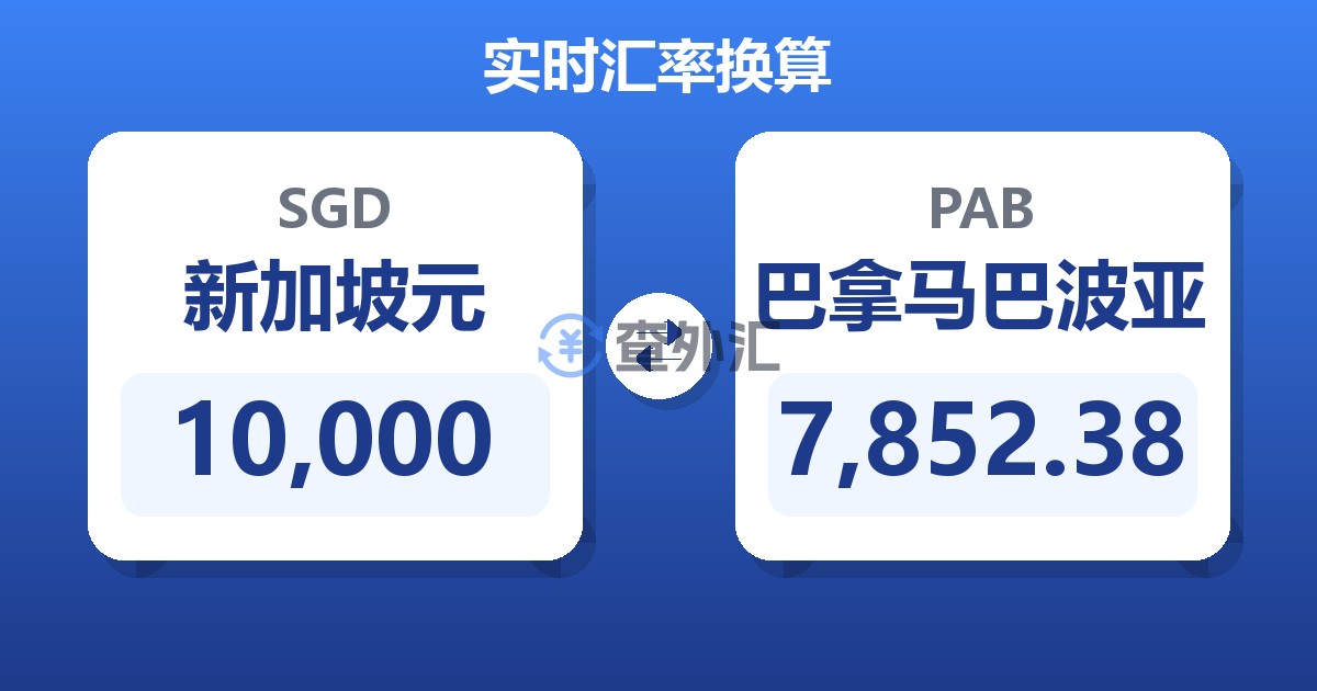 10,000 新加坡元 (SGD) = 7,848.68 巴拿马巴波亚 (PAB)