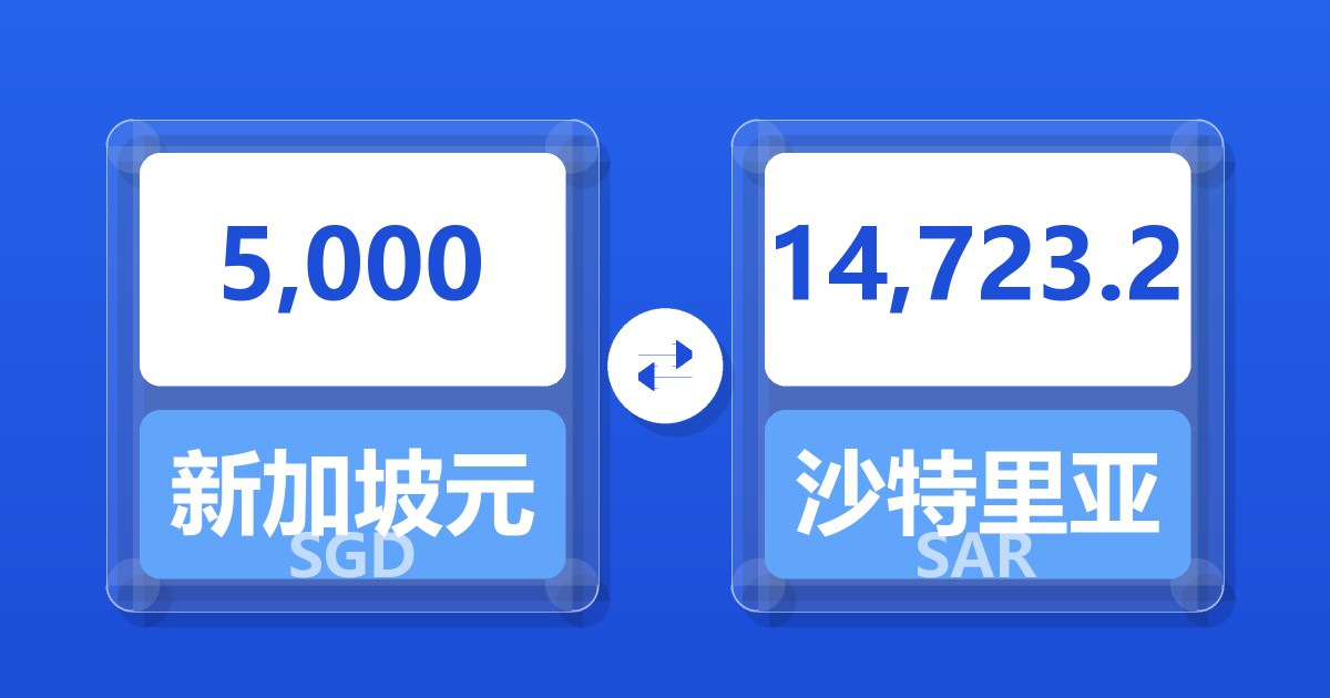 5,000 新加坡元 (SGD) = 14,716.27 沙特里亚尔 (SAR)