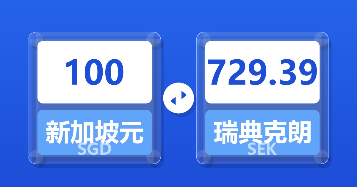 100 新加坡元 (SGD) = 730.19 瑞典克朗 (SEK)