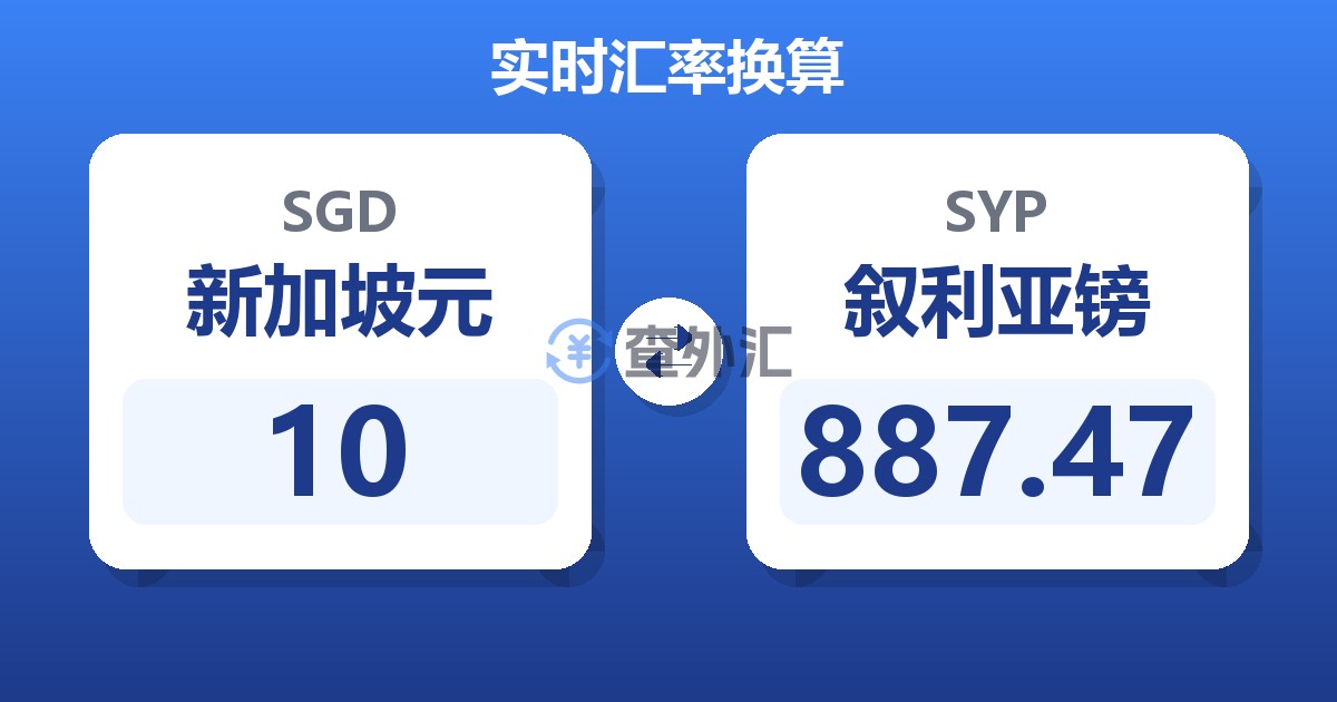 10 新加坡元 (SGD) = 891.49 叙利亚镑 (SYP)