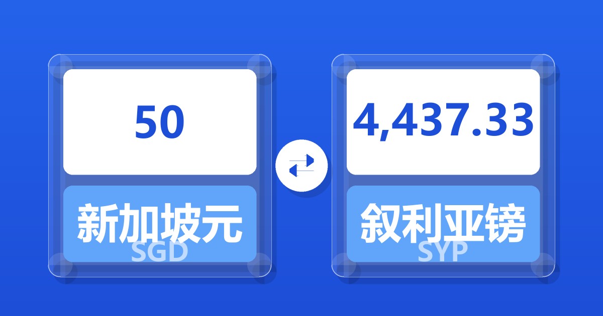 50 新加坡元 (SGD) = 4,457.47 叙利亚镑 (SYP)