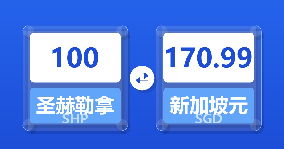100 圣赫勒拿镑 (SHP) = 170.95 新加坡元 (SGD)