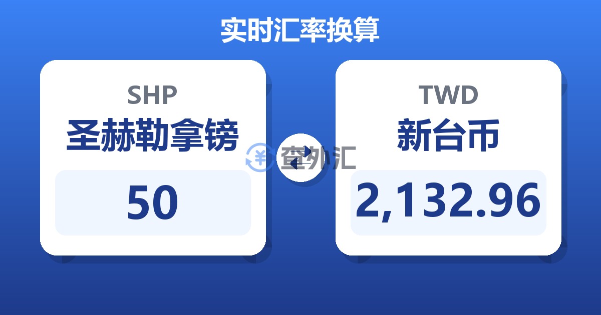 50 圣赫勒拿镑 (SHP) = 2,130.36 新台币 (TWD)