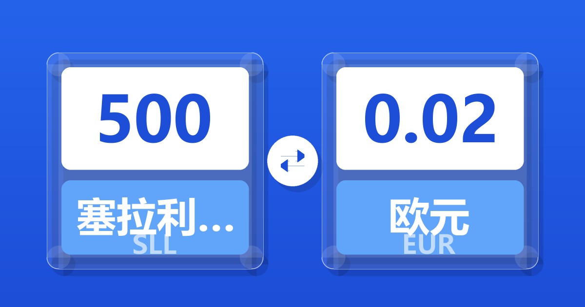 500 塞拉利昂利昂(旧) (SLL) = 0.02 欧元 (EUR)