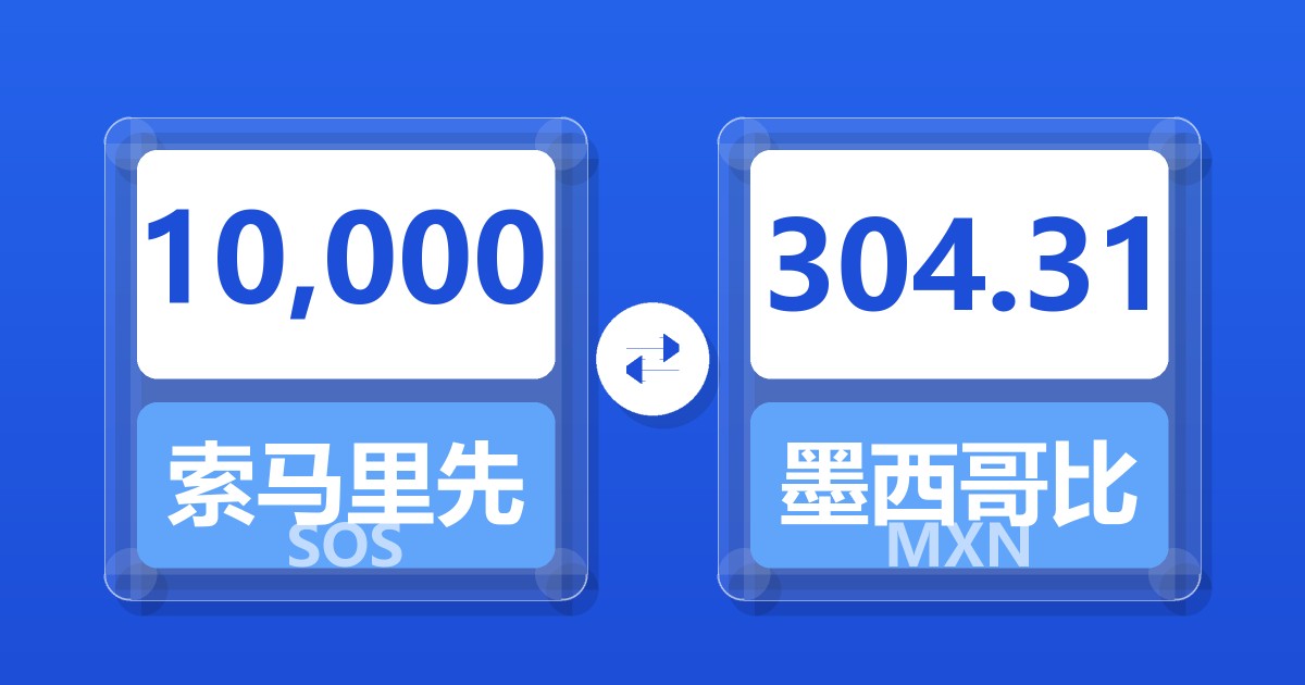 10,000 索马里先令 (SOS) = 304.31 墨西哥比索 (MXN)