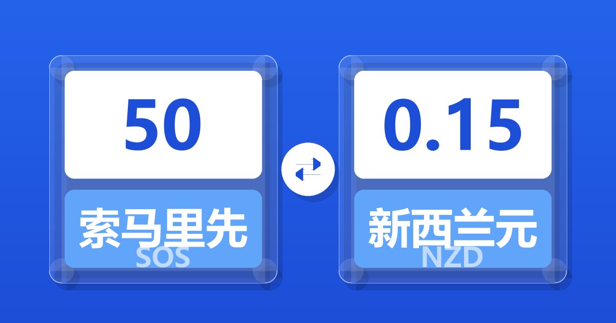 50 索马里先令 (SOS) = 0.15 新西兰元 (NZD)