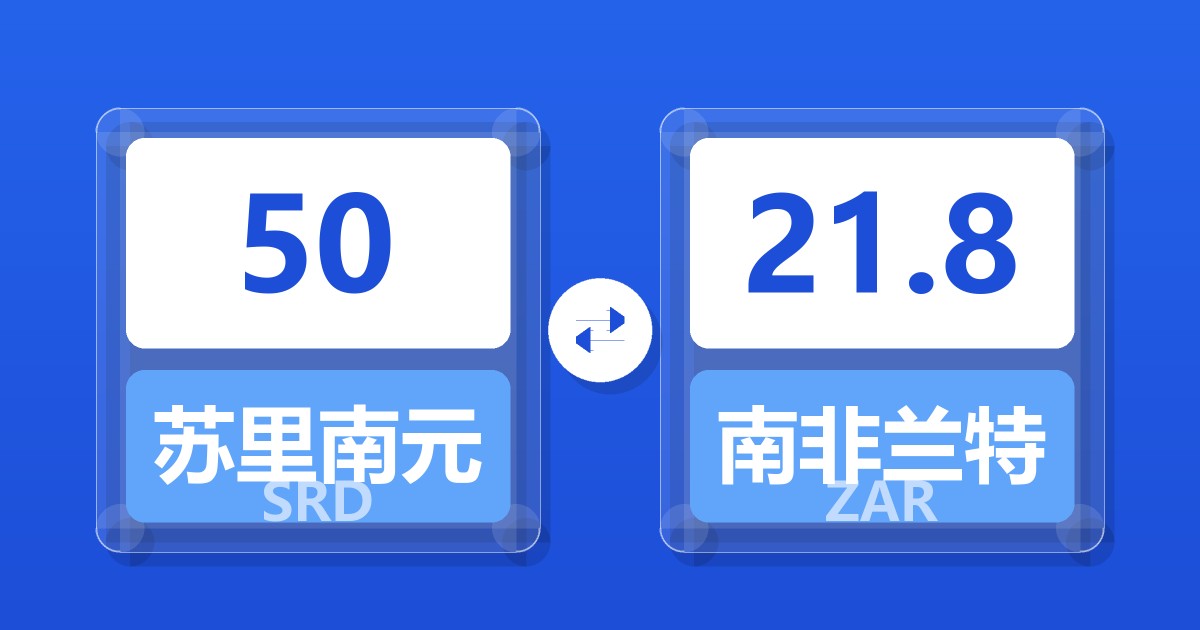 50 苏里南元 (SRD) = 21.78 南非兰特 (ZAR)
