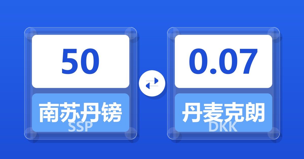 50 南苏丹镑 (SSP) = 0.07 丹麦克朗 (DKK)