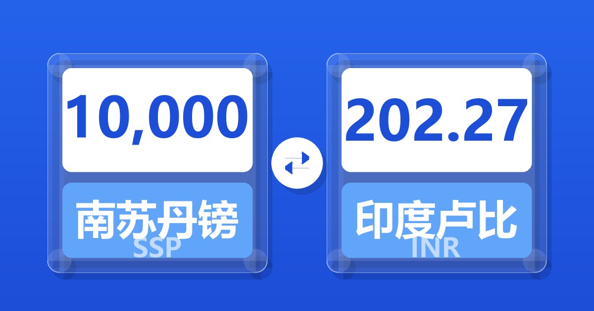 10,000 南苏丹镑 (SSP) = 201.82 印度卢比 (INR)