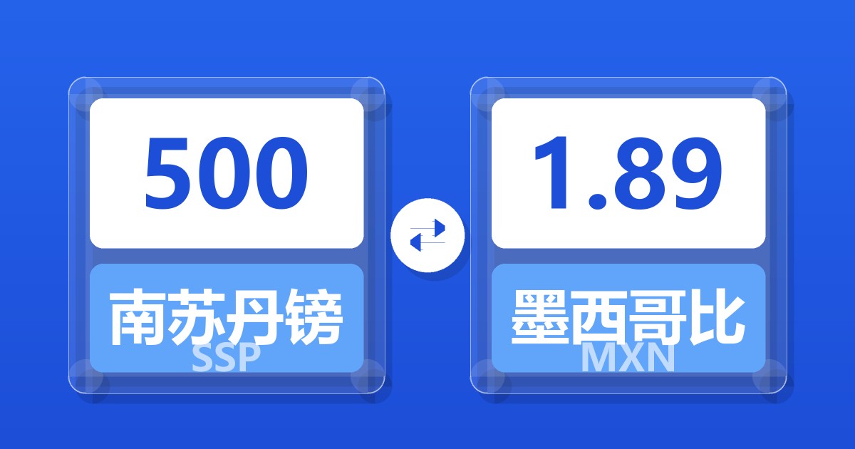 500 南苏丹镑 (SSP) = 1.90 墨西哥比索 (MXN)