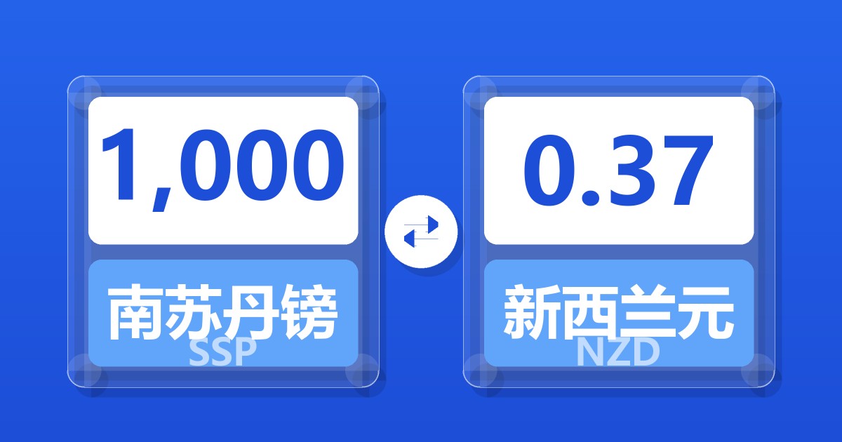 1,000 南苏丹镑 (SSP) = 0.37 新西兰元 (NZD)