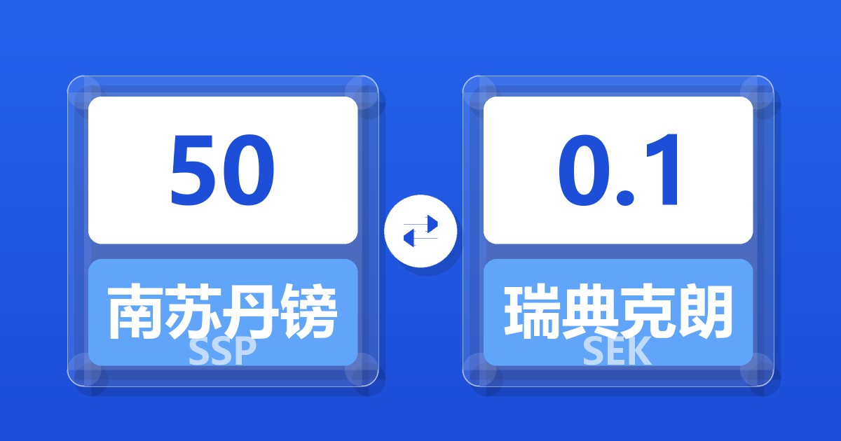 50 南苏丹镑 (SSP) = 0.10 瑞典克朗 (SEK)
