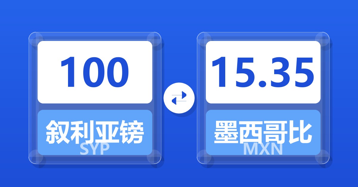 100 叙利亚镑 (SYP) = 15.35 墨西哥比索 (MXN)