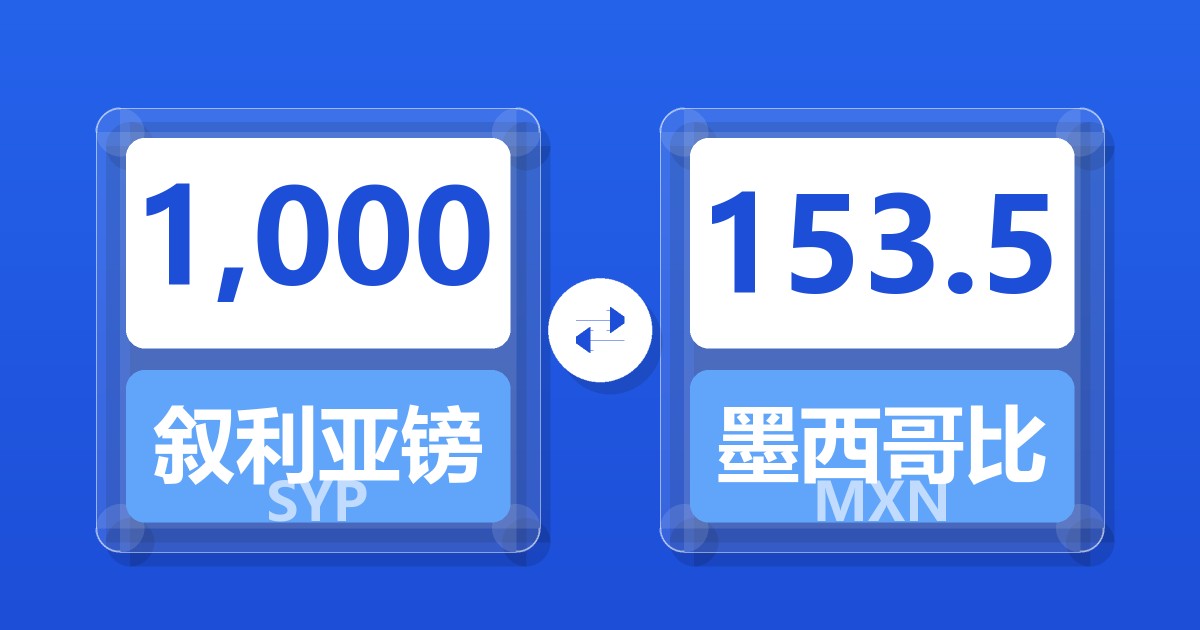 1,000 叙利亚镑 (SYP) = 153.50 墨西哥比索 (MXN)