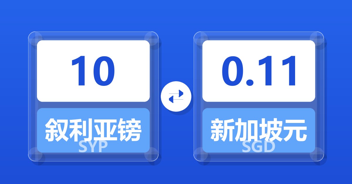 10 叙利亚镑 (SYP) = 0.11 新加坡元 (SGD)